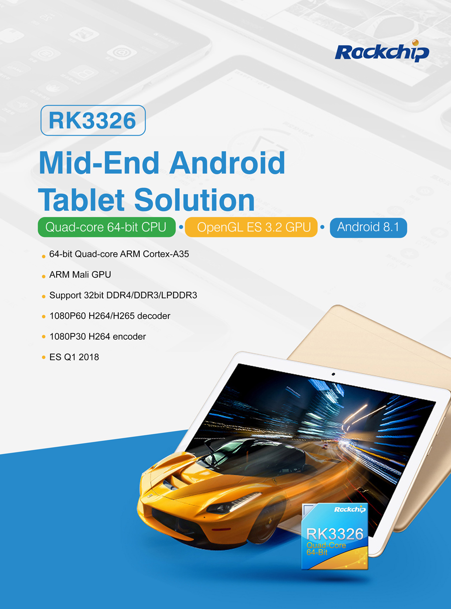 RK3326采用ARM 64bit 四核Cortex-A35 CPU,綜合性能較ARM A7提升近40%;支持OpenGL ES 3.2, Vulkan 1.0 GPU;支持DDR4/DDR3/LPDDR3等多種型號DDR,可靈活選擇配置;充裕的帶寬設(shè)計,更好地支持較高分辨率LCD及更為復(fù)雜的應(yīng)用場景;支持MIPI CSI,內(nèi)置8M ISP;支持Android 8.1系統(tǒng)。2018年Q1向合作伙伴提供平臺。