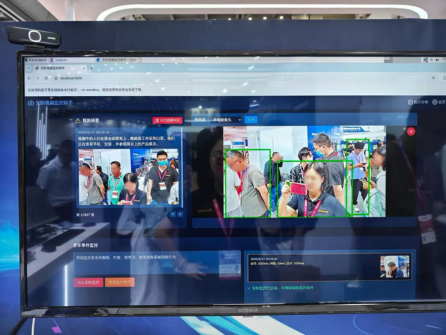 作為本次的重磅新品,瑞芯微新一代4K機器視覺芯片RV1126B備受關(guān)注。RV1126B具備3T強勁算力,可運行2B以內(nèi)規(guī)模的大語言模型及多模態(tài)模型,針對算力、AI-ISP、AOV3.0、超級編碼、防抖等性能均有明顯升級。現(xiàn)場演示了多項引領(lǐng)行業(yè)的技術(shù)應(yīng)用,賦能各類視覺設(shè)備實現(xiàn)從“看得見”到“看得懂”的質(zhì)的飛躍: