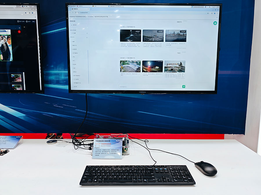 端側(cè)大模型展區(qū),展出RK182X端側(cè)AI算力協(xié)處理器及系列相關(guān)應(yīng)用。RK182X具備大算力、高帶寬特性,支持3B/7B大模型突破百token/s輸出,可根據(jù)算力需求疊加一個或多個RK182X協(xié)處理器,為終端設(shè)備提供前所未有的算力靈活性,針對端側(cè)AI復(fù)雜計算需求,特別是在多路視覺分析領(lǐng)域如智能安防、智能社區(qū)、智能校園等提供安全、可靠、低成本的AI部署選擇。