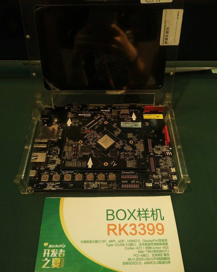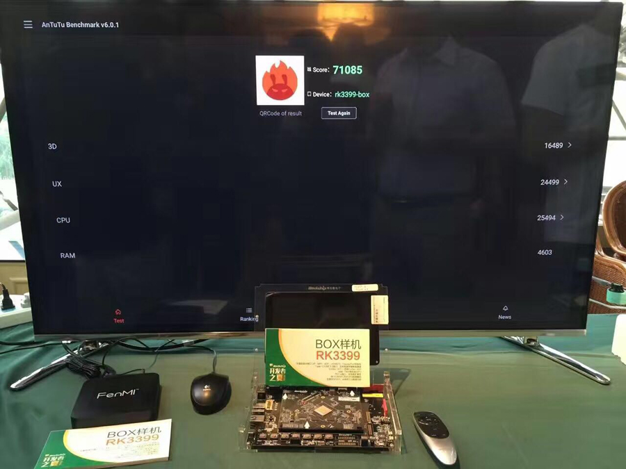 Rockchip displayed RK3399 series development boards in the event! RK3399 was launched in April during Hong Kong Electronics Fair and attracted lots of attention of developers and terminal manufacturers. Rockchip technicians tested the performance of RK3399 TV Box, showing very good grades!