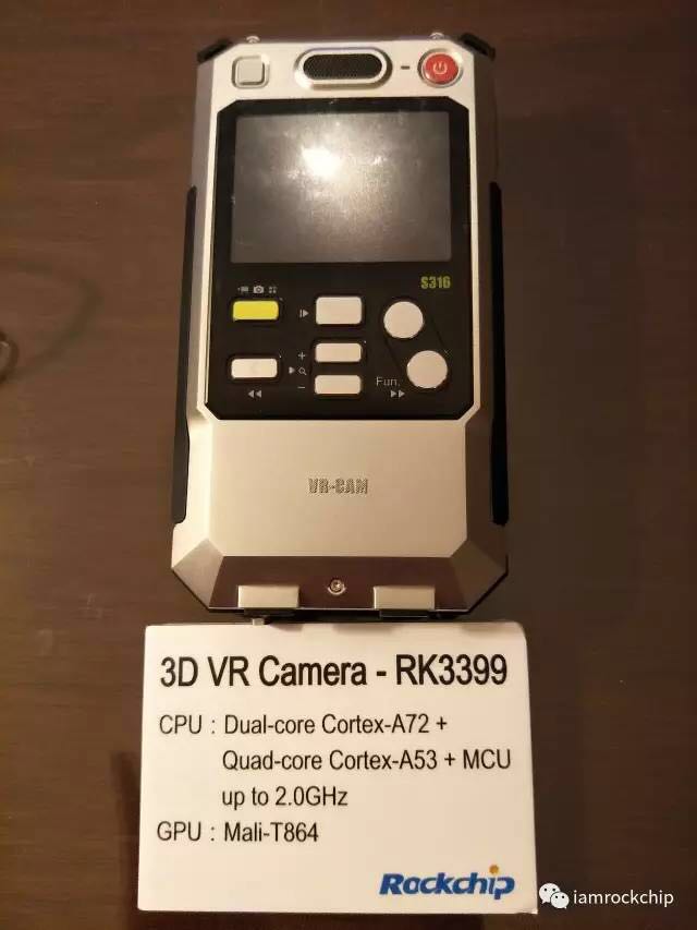3D-VR camera solution launched by Rockchip adopts flagship chip RK3399, big.LITTLE structure, Dual-core Cortex-A72+ Quad-core Cortex-A53 with dual camera input and dual ISP real-time processing. GPU adopts Mali-T860 image processor. With large optimization potential in terms of integer number, floating point and memory, its CPU features high performance and low consumption.